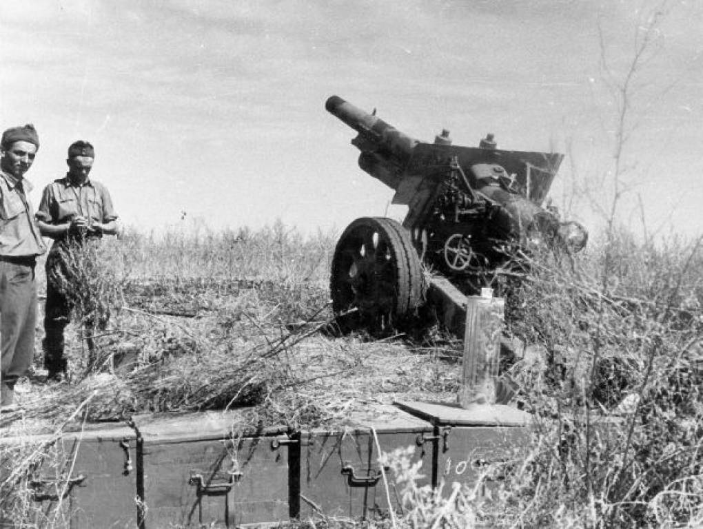 Magyar gyártmányú 150 mm-es 31 M gépvontatású közepes tarack.